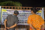 Warga mengamati Daftar Pencarian Orang (DPO) Rumah Tahanan (Rutan) yang dipajang di salah satu Stasiun Pengisian Bahan bakar Umum (SPBU) di Palu, Sulawesi Tengah, Kamis (29/11/2018). Dari 1.670 orang narapidana di Rutan Palu yang melarikan diri saat terjadi gempa 28 September 2018, sebanyak 1.244 orang diantaranya telah menyerahkan diri kembali dan sisanya 426 orang belum kembali dan dinyatakan sebagai DPO. ANTARA FOTO/Basri Marzuki/aww.