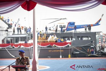 Kapolri Jenderal Pol Tito Karnavian memberikan sambutan saat peresmian armada baru Polairud dalam peringatan HUT ke-68 Polairud di Makopolair Baharkam Mabes Polri, Tanjung Priok, Jakarta, Senin (3/12/2018). Kepolisian Air dan Udara (Polairud) Baharkam Polri meresmikan 23 armada baru yang terdiri dari kapal, pesawat serta helikopter yang diharapkan dapat menekan kejahatan di wilayah perbatasan Indonesia. ANTARA FOTO/Aprillio Akbar/kye.