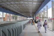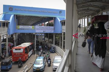 Pejalan kaki melintasi Skybridge atau Jembatan Penyeberangan Multiguna (JPM) Tanah Abang di Jakarta, Jumat (7/12/2018). Uji coba lintasan Skybridge dilakukan mulai Jumat (7/12/2018) dan dibuka bagi para pejalan kaki mulai pukul 07.00 WIB hingga pukul 18.00 WIB. ANTARA FOTO/Dhemas Reviyanto/aww.