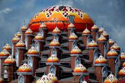 Suasana aktivitas pembangunan masjid 99 kubah, Makassar, Sulawesi Selatan, Sabtu (15/12/2018). Masjid 99 kubah yang dirancang Ridwan Kamil tersebut dibangun di atas tanah proyek reklamasi pantai Center Point of Indonesia (CPI) dengan menggunakan anggaran APBD sebesar Rp169 miliar yang diharapkan menjadi ikon baru Sulawesi Selatan. ANTARA FOTO/Abriawan Abhe/aww.