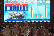 Kakorlantas Polri Irjen Pol Refdi Andri (tengah) bersama Direktur Penegakan Hukum (Dirgakkum) Korlantas Polri Brigjen Pol Pujiono Dulrahman (kedua kiri), Direktur Registrasi dan Identifikasi (Dirregident) Korlantas Polri Brigjen Pol Halim Pagarra (kedua kanan), Kabag Ops Korlantas Polri Kombes Pol Benyamin (kanan), Kabag Penerangan Umum Polri Kombes Pol Syahardiantono memberikan keterangan pers terkait Operasi Lilin 2018 di NTMC Polri, Jalan MT Haryono, Jakarta, Jumat (4/1/2019).Kakorlantas Polri Irjen Pol Refdi Andri mengatakan pada Operasi Kepolisian Terpusat atau Operasi Lilin 2018 jumlah pelanggaran lalu lintas mengalami penurunan sebanyak 288 perkara atau 0,3 persen sedangkan jumlah kecelakaan lalu lintas mengalami penurunan sebanyak 292 kasus atau 30 persen lebih rendah dibandingkan pada Operasi Lilin 2017. ANTARA FOTO/Galih Pradipta/aww.