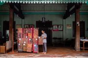 Pemilik rumah produksi batik tulis Lasem ‘Lumintu’ Ekawatiningsih (49) menata kain batik tulis di rumah kuno berarsitektur tradisional Tionghoa keluarga IE generasi keenam di Desa Sumbergirang, Lasem, Rembang, Jawa Tengah, Kamis (17/1/2019). Pemanfaatan rumah kuno untuk gerai penjualan sekaligus rumah produksi batik tulis khas Lasem itu sebagai upaya pemilik bangunan untuk menghidupkan wisata sejarah serta kebudayaan Lasem pada awal abad ke-19 melalui pelestarian bangunan kuno. ANTARA FOTO/Aji Styawan/ama.