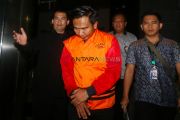 Adik dari Bupati Mesuji Khamami, Taufik Hidayat mengenakan rompi tahanan seusai menjalani pemeriksaan terkait operasi tangkap tangan (OTT) kasus dugaan korupsi Bupati Mesuji di Gedung KPK, Jakarta, Jumat (25/1/2019). KPK menahan lima tersangka terkait kasus dugaan korupsi proyek infrastruktur di Dinas PUPR Kabupaten Mesuji, yakni Bupati Mesuji Khamami dan adiknya Taufik Hidayat, Sekretaris Dinas PUPR Kabupaten Mesuji Wawan Suhendra, pemilik PT Jasa Promix Nusantara dan PT Secilia Putri Sibron Azis serta Kardinal selaku swasta. ANTARA FOTO/Rivan Awal Lingga/wpa/ama.