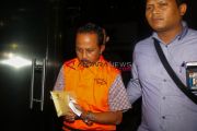 Sekretaris Dinas PUPR Kabupaten Mesuji Wawan Suhendra mengenakan rompi tahanan seusai menjalani pemeriksaan terkait operasi tangkap tangan (OTT) kasus dugaan korupsi Bupati Mesuji di Gedung KPK, Jakarta, Jumat (25/1/2019). KPK menahan lima tersangka terkait kasus dugaan korupsi proyek infrastruktur di Dinas PUPR Kabupaten Mesuji, yakni Bupati Mesuji Khamami dan adiknya Taufik Hidayat, Sekretaris Dinas PUPR Kabupaten Mesuji Wawan Suhendra, pemilik PT Jasa Promix Nusantara dan PT Secilia Putri Sibron Azis serta Kardinal selaku swasta. ANTARA FOTO/Rivan Awal Lingga/wpa/ama.