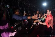 Pebulu tangkis Indonesia Liliyana Natsir (kanan) menyapa pendukung saat pesta perpisahannya di Istora Senayan, Jakarta, Minggu (27/1/2019). Peraih emas bulu tangkis pada Olimpiade Rio 2016 di nomor ganda campuran itu memutuskan pensiun usai menjalani karir selama 24 tahun. ANTARA FOTO/Akbar Nugroho Gumay/foc.
