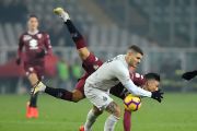 Pemain Inter Milan Dalbert berebut bola dengan pemain Torino Lorenzo De Silvestri pada pertandingan liga Italia seria A di Stadion Olimpico Grande Torino, Turin, Minggu (27/1/2019). Torino mengalahkan Inter Milan dengan skor 1-0. ANTARA FOTO/REUTERS/Massimo Pinca/pras.