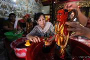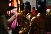 Warga mencuci patung dewa di klenteng Hok An Kiong di Jalan Coklat, Surabaya, Jawa Timur, Selasa (29/1/2019). Sejumlah klenteng melakukan ritual pencucian patung dewa menjelang perayaan tahun baru Imlek 2570 yang jatuh pada Selasa, 5 Februari 2019. ANTARA FOTO/Didik Suhartono/hp.