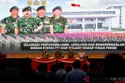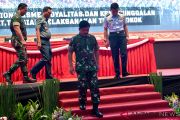 Panglima TNI Marsekal TNI Hadi Tjahjanto (kedua kanan) didampingi KASAD Jenderal TNI Andika Perkasa (kedua kiri) KASAL Laksamana TNI Siwi Sukma Adji (kanan) dan KASAU Marsekal TNI Yuyu Sutisna berfoto bersama seusai penutupan Rapat Pimpinan (Rapim) TNI Tahun 2019, di Mabes TNI, Cilangkap, Jakarta Timur, Kamis (31/1/2019). Rapim bertema "Dilandasi Profesionalisme, Loyalitas, dan Kemanunggalan dengan Rakyat, TNI Siap Melaksanakan Tugas Pokok" tersebut resmi ditutup. ANTARA FOTO/Sigid Kurniawan/hp.