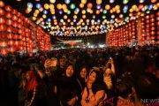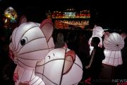 Warga memadati kawasan Pasar Gede yang dihiasi dengan lampion saat malam Tahun Baru Imlek 2019 di Solo, Jawa Tengah, Senin (4/2/2019). Panitia Imlek Solo memasang ribuan lampion di kawasan Pasar Gede untuk memeriahkan perayaan Tahun Baru Imlek 2570/2019 sekaligus juga sebagai daya tarik wisatawan berkunjung ke Kota Solo. ANTARA FOTO/Mohammad Ayudha/wsj.