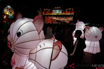 Warga memadati kawasan Pasar Gede yang dihiasi dengan lampion saat malam Tahun Baru Imlek 2019 di Solo, Jawa Tengah, Senin (4/2/2019). Panitia Imlek Solo memasang ribuan lampion di kawasan Pasar Gede untuk memeriahkan perayaan Tahun Baru Imlek 2570/2019 sekaligus juga sebagai daya tarik wisatawan berkunjung ke Kota Solo. ANTARA FOTO/Mohammad Ayudha/hp.