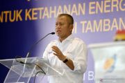 Direktur Utama PT Bukit Asam Tbk Arviyan Arifin menjelaskan tentang potensi investasi batubara sebagai subtitusi gas elpiji pada pencanangan pembangunan pabrik hilirisasi batu bara menjadi Dimethyl Ether (DME) di tambang Peranap PT Bukit Asam di Kabupaten Inhu, Riau, Kamis (7/2/2019). PT Bukit Asam Tbk bersama PT Pertamina (Persero) dan PT Air Products Indonesia membentuk perusahaan patungan untuk investasi sektor hilirisasi batu bara menjadi DME pertama di Indonesia, yang akan mulai dibangun pada 2020 berupa pabrik berkapasitas 1,4 juta ton DME per tahun dengan nilai investasi sekitar 2 miliar dolar AS. ANTARA FOTO/FB Anggoro/hp.