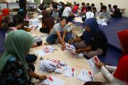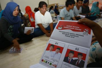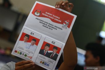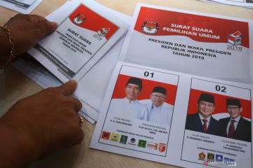 Petugas logistik KPU Pusat melipat surat pemilihan Presiden dan Wakil Presiden 2019 untuk pemilih luar negeri di gudang logistik KPU di Benda, Tangerang, Banten, Kamis (7/2/2019). Pemilih WNI di luar negeri tercatat 2.058.191 orang yang telah masuk Daftar Pemilih Tetap (DPT) di berbagai negara, dengan pelaksanaan pemilu lebih awal yaitu pada tanggal 8 hingga 14 April 2019, sedangkan pemungutan suara di dalam negeri akan dilakukan pada 17 April 2019. ANTARA FOTO/Muhammad Iqbal/hp.