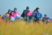 Prajurit Wanita TNI Angkatan Udara (Wara) berjalan seusai melakukan Terjun Free Fall di Pangkalan Udara Sultan Iskandar Muda, Aceh Besar, Aceh, Jumat (8/2/2019). Latihan Terjun Penyegaran dan dilanjutkan Terjun Free Fall itu melibatkan sebanyak 105 prajurit untuk meningkatkan kemampuan dan profesionalisme TNI AU. ANTARA FOTO/Ampelsa/hp.