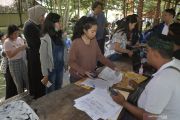 Sejumlah mahasiswa melengkapi data saat mengurus layanan pindah memilih di Universitas Udayana, Jimbaran, Badung, Bali, Kamis (14/2/2019). Layanan yang digelar KPU Kabupaten Badung tersebut guna memfasilitasi warga dari daerah lain khususnya mahasiswa yang berasal dari luar daerah untuk mengurus Formulir A5 agar dapat menggunakan hak pilihnya di Badung saat Pemilu 2019 mendatang dengan layanan pindah memilih. ANTARA FOTO/Fikri Yusuf/hp.
