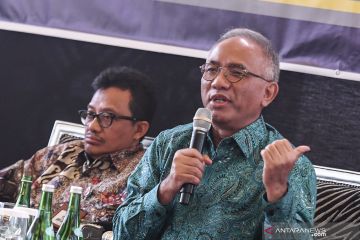 Direktur Utama PT Adhi Karya Budi Harto (kanan) bersama Direktur Operasional II PT Adhi Karya Pundjung Setya Brata menjadi pembicara dalam diskusi terkait LRT Jabodebek di Jakarta, Jumat (15/2/2019). Diskusi tersebut membahas tepat guna pembangunan infrastruktur transportasi LRT Jabodebek. ANTARA FOTO/Hafidz Mubarak A/hp.