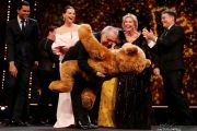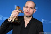 Tom Mercier memegang trofi Beruang Emas untuk Film Terbaik pada malam penghargaan Festival Film Internasional Berlinale ke-69 di Berlin, Jerman, Sabtu (16/2/2019) malam waktu setempat. ANTARA FOTO/Reuters/Fabrizio Bensch/wsj.