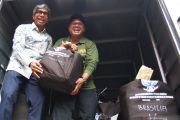 Wakil Menlu AM Fachir (kiri) bersama Ketua KPU Arief Budiman (kanan) menunjukan paket berisi surat suara yang akan dikirim ke luar negeri di Benda, Tangerang, Banten, Minggu (17/2/2019). KPU mulai melakukan pengiriman perdana surat suara Pemilu 2019 ke 27 negara. Jumlah pemilih WNI di luar negeri tercatat 2.058.191 orang yang telah masuk Daftar Pemilih Tetap (DPT) di berbagai negara, dengan pelaksanaan pemilu lebih awal yaitu pada tanggal 8 hingga 14 April 2019, sedangkan pemungutan suara di dalam negeri akan dilakukan pada 17 April 2019. ANTARA FOTO/Muhammad Iqbal/aww.