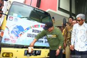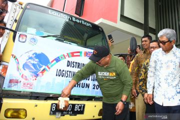 Wakil Menteri Luar Negeri AM Fachir (kanan) menyaksikan Ketua KPU Arief Budiman (kiri) melakukan seremoni pelepasan paket berisi surat suara yang akan dikirim ke luar negeri di Benda, Tangerang, Banten, Minggu (17/2/2019). KPU mulai melakukan pengiriman perdana surat suara Pemilu 2019 ke 27 negara. Jumlah pemilih WNI di luar negeri tercatat 2.058.191 orang yang telah masuk Daftar Pemilih Tetap (DPT) di berbagai negara, dengan pelaksanaan pemilu lebih awal yaitu pada tanggal 8 hingga 14 April 2019, sedangkan pemungutan suara di dalam negeri akan dilakukan pada 17 April 2019. ANTARA FOTO/Muhammad Iqbal/aww.