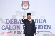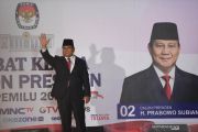 Capres nomor urut 02 Prabowo Subianto tiba untuk mengikuti debat capres 2019 putaran kedua di Hotel Sultan, Jakarta, Minggu (17/2/2019). Debat kedua yang diikuti pasangan capres nomor urut 01 Joko Widodo dan capres nomor urut 02 Prabowo Subianto tersebut mengangkat tema energi dan pangan, sumber daya alam dan lingkungan hidup, serta infrastruktur. ANTARA FOTO/Rivan Awal Lingga/pras.