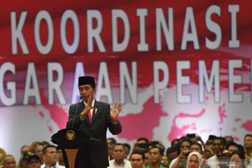 Presiden Joko Widodo memberikan pidato dalam acara Rakornas Penyelenggaraan Pemerintahan Desa 2019 di Jakarta, Rabu (20/2/2019). Presiden memerintahkan agar dana desa digunakan sebaik-baiknya untuk meningkatkan kesejahteraan penduduk di desa. ANTARA FOTO/Akbar Nugroho Gumay/hp.