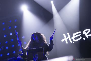 Penyanyi asal Amerika Gabi Wilson alias H.E.R beraksi dalam BNI Java Jazz Festival 2019, di JIExpo Kemayoran, Jakarta, Jumat (1/3/2019). BNI Java Jazz Festival 2019 menghadirkan sederet musisi dari dalam dan luar negeri yang diselenggarakan mulai Jumat (1/3) hingga Minggu (3/3). ANTARA FOTO/Aprillio Akbar/pd.