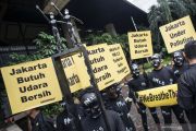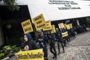 Sejumlah aktivis greenpeace melakukan aksi teatrikal terkait kualitas udara Jakarta, di Kementerian Lingkungan Hidup dan Kehutanan, Jakarta, Selasa (5/3/2019). Greenpeace mencatat konsentransi PM (particulate matter) 2.5 atau di Jakarta mencapai empat kali lipat di atas batas aman tahunan menurut standar Badan Kesehatan Dunia (WHO), yaitu 10 ug per meter kubik dan bahkan melebihi batas aman menurut standar nasional pada PP No 41 tahun 1999 tentang pencemaran udara, yaitu 15 ug per meter kubik. ANTARA FOTO/Aprillio Akbar/pras.