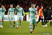 Pemain Arsenal Henrikh Mkhitaryan (kanan) dan rekan setimnya berjalan keluar lapangan usai bertanding melawan Stade Rennes saat pertandingan leg pertama babak 16 besar Liga Europa di Roazhon Parks, Rennes, Prancis, Jumat (8/3/2019) dini hari. Arsenal dipaksa bertekuk lutut saat bertandang ke kandang Rennes dengan skor 1-3. ANTARA FOTO/REUTERS/Stephane Mahe/wsj.