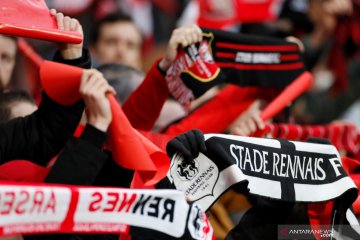 Suporter klub Stade Rennes memegang syal saat pertandingan leg pertama babak 16 besar Liga Europa antara Stade Rennes dan Arsenal di Roazhon Parks, Rennes, Prancis, Jumat (8/3/2019) dini hari. Arsenal dipaksa bertekuk lutut saat bertandang ke kandang Rennes dengan skor 1-3. ANTARA FOTO/Action Images via Reuters/Paul Childs/wsj.