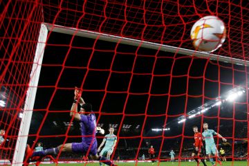 Pemain Stade Rennes Ismaila Sarr mencetak gol ke gawang Arsenal yang dijaga Petr Cech saat pertandingan leg pertama babak 16 besar Liga Europa di Roazhon Parks, Rennes, Prancis, Jumat (8/3/2019) dini hari. Arsenal dipaksa bertekuk lutut saat bertandang ke kandang Rennes dengan skor 1-3. ANTARA FOTO/Action Images via Reuters/Paul Childs/wsj.