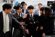 Penyanyi K-pop anggota grup Bigbang, Seungri, tiba untuk menjalani pemeriksaan atas skandal pelecehan seksual di kantor polisi Seoul, Korsel, Kamis (14/3/2019). ANTARA FOTO/REUTERS/Kim Hong-Ji/pras.