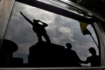 Refleksi mahasiswa yang tergabung dalam Persatuan Mahasiswa Islam Indonesia (PMII) berunjuk rasa di depan Kantor Bupati Pandeglang, Banten, Kamis (14/3/2019). Mereka memprotes pembelian mobil dinas Bupati Pandeglang Irna Narulita seharga Rp1,9 miliar dari APBD 2019, kontras dengan keadaan Pandeglang yang masih termasuk daerah tertinggal. ANTARA FOTO/Muhammad Bagus Khoirunas/af/aww.
