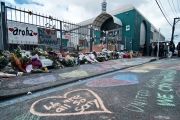 Tulisan pesan perdamaian dan bunga diletakkan warga di depan Masjid Wellington, Kilbirnie, Wellington, Selandia Baru, Sabtu (16/3/2019). Warga Wellington meletakkan bunga sebagai aksi solidaritas pascapenembakan di dua masjid kota Christchurch pada Jumat (15/3). ANTARA FOTO/Ramadian Bachtiar/pras.