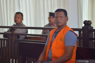 Terdakwa Mahyudin yang merupakan anggota kelompok jaringan penyelundupan narkoba jenis sabu dari Malaysia mengikuti sidang putusan di Pengadilan Negeri Banda Aceh, Senin (18/3/2019). Dalam persidangan tersebut, empat terdakwa dijatuhi hukuman mati yakni Mahyudin, Abdul Hana, Azhari dan Albakir, sedangkan seorang terdakwa lainnya, Razali dihukum seumur hidup dalam kasus penyelundupan sabu sebanyak 50 kilogram dari Malaysia. ANTARA FOTO/Ampelsa/wsj.