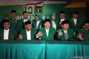 Plt Ketua Umum PPP Suharso Monoarfa (tengah) berserta jajaran pengurus berfoto bersama pada pembukaan Mukernas III Dewan Pimpinan Pusat PPP di Bogor, Jawa Barat, Rabu (20/3/19). Agenda utama Mukernas PPP tersebut adalah pengukuhan Suharso Monoarfa sebagai Pelaksana Tugas Ketua Umum, menggantikan posisi Romahurmuziy yang telah dipecat karena tersandung kasus korupsi.. ANTARA FOTO/Yulius Satria Wijaya/pras.