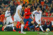 Pesepakbola Spanyol Alvaro Morata (kedua kanan) membawa bola dan dijaga pemain Norwegia Omar Elabdellaoui dan Kristoffer Ajer dalam pertandingan babak kualifikasi Piala Eropa 2020 Group F, di Stadion Mestalla, Valencia, Spanyol, Sabtu (23/3/2019). Spanyol akhirnya menang 2-1 atas Norwegia. ANTARA FOTO/Reuters-Heino Kalis/hp.