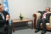 Menteri PPN/Kepala Bappenas Bambang Brodjonegoro (kiri) melakukan pertemuan dengan Sekjen Perserikatan Bangsa-Bangsa (PBB) Antonio Guterres, disela forum tingkat tinggi United Nations Conference on South-South Cooperation (BAPA+40 Conference), di Buenos Aires, Argentina, Jumat (22/3/2019). Disela pertemuan BAPA+40, Menteri Bambang selain bertemu Sekjen PBB juga melakukan pertemuan bilateral tingkat tinggi dengan Presiden Dewan Ekonomi dan Sosial (ECOSOC) PBB Inga Rhonda King untuk menjelaskan peran sentral Kementerian PPN/Bappenas sebagai Koordinator Nasional SDGs di Indonesia dan rencana pembentukan Indonesia Aid sebagai upaya penguatan Kerjasama Selatan-Selatan Tringular (KSST) ANTARA FOTO/HO/ hp.