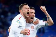 Pesepak bola Denmark Mathias Jorgensen membuat gol pertama untuk timnya saat melawan Denmark dalam pertandingan Kualifikasi Piala Eropa 2020 Grup D, di Stadion St. Jakob-Park, Basel, Swiss, Selasa (26/3/2016). Swiss akhirnya harus puas dengan hasil imbang 3-3 setelah sebelumnya sempat unggul 3-0 dan berhasil disamakan oleh Denmark. ANTARA FOTO/Reuters- Arnd Wiegmann/hp.
