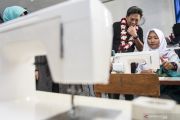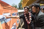 Direktur Utama Bank Mega Kostaman Thayib (kiri) berbincang dengan siswa SMK Miftahul Bariyyah di sela-sela peninjauan bangunan kelas baru SMK Miftahul Bariyyah di Subang, Jawa Barat, Jumat (29/3/2019). Program Mega Berbagi merupakan kepedulian Bank Mega kepada dunia pendidikan melalui pembangunan kembali bangunan sekolah yang rusak dan pengadaan fasilitas pendukung proses belajar mengajar. ANTARA FOTO/M Agung Rajasa/hp.