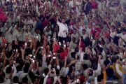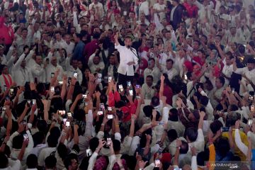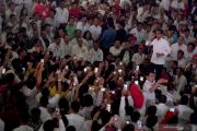 Calon Presiden nomor urut 01 Joko Widodo berpidato saat kampanye di GOR Dispora Sumut, Deli Serdang, Sumatera Utara, Jumat (5/4/2019). Dalam kampanyenya Jokowi mengajak pendukungnya untuk memerangi hoaks serta memenangkan pasangan Jokowi-Ma'ruf Amin pada Pilpres 2019. ANTARA FOTO/Akbar Nugroho Gumay/hp.