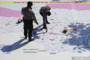 Polisi memimpin simulasi pengamanan kota pada Apel Gelar Pasukan Pengamanan Kampanye Terbuka Pemilu 2019 di Solo Jawa Tengah, Senin (8/4/2019). Kegiatan tersebut digelar sebagai kesiapan Polri dan TNI serta sejumlah instansi dalam mengamankan kampanye akbar calon presiden nomor urut 01, Joko Widodo pada 9 April 2019 dan calon presiden nomor urut 02, Prabowo Subianto pada 10 April 2019, yang rencananya digelar di Stadion Sriwedari, Solo. ANTARA FOTO/Maulana Surya/pras.