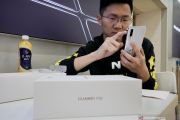 Pedagang menyalakan gawai pintar terbaru Huawei P30 untuk konsumen usai penjualan Huwaei P30 dan P30 Pro dimulai di Toko Huwaei, Beijing, Cina, Kamis (11/4/2019). ANTARA FOTO/REUTERS/Jason Lee/wsj.