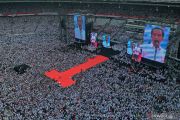 Calon Presiden nomor urut 01 Joko Widodo (tengah) berpidato saat Konser Putih Bersatu di Stadion Utama GBK, Jakarta, Sabtu (13/4/2019). Konser itu merupakan kampanye akbar untuk memenangkan pasangan Jokowi-Ma'ruf Amin. ANTARA FOTO/Akbar Nugroho Gumay/hp