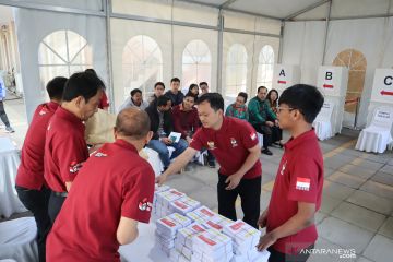 Kelompok Penyelenggara Pemungutan Suara Luar Negeri (KPPSLN) Beijing mengeluarkan surat suara dari kotak suara tersegel di depan para pemilih sebelum pemungutan suara dimulai di Beijing, Cina, Minggu (14/4/2019). Penghitungan surat suara yang sudah dicoblos oleh para pemilih baru akan dihitung pada Rabu (17/4/2019) bersamaan dengan Pemilu serentak di Indonesia. ANTARA FOTO/M. Irfan Ilmie/wsj.