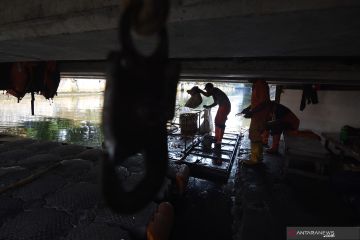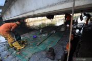 Petugas UPK Badan Air Dinas Lingkungan Hidup DKI Jakarta membersihkan sampah sebagai bagian dari naturalisasi di aliran air Sungai Ciliwung Lama, Pasar Baru, Jakarta, Minggu (14/4/2019). Pemprov DKI Jakarta berupaya melakukan naturalisasi sungai untuk mencegah banjir, juga diharapkan dapat memenuhi kebutuhan air baku warga Jakarta. ANTARA FOTO/Indrianto Eko Suwarso/foc.