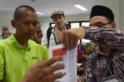 Sejumlah perwakilan duta besar negara sahabat yang tergabung dalam kegiatan 'Election Visit Program' berada di dalam Tempat Pemungutan Suara (TPS) 022 di Panti Sosial Bina Laras Harapan Sentosa 3, Jakarta Barat, Rabu (17/4/2019). Kegiatan tersebut bertujuan untuk mempromosikan penyelenggaraan Pemilu Indonesia yang langsung, umum, bebas, rahasia, jujur, dan adil. ANTARA FOTO/M Risyal Hidayat/foc.