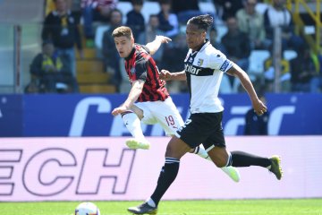 Pemain Parma Federico Dimarco (kiri) berebut bola dengan pemain AC Milan Suso pada pertandingan Serie A Italia di Stadion Ennio Tardini, Parma, Italia, Sabtu (20/4/2019). ANTARA FOTO/REUTERS/Jennifer Lorenzini/aww.