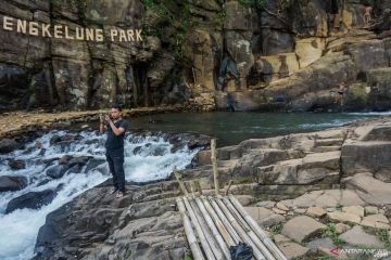 Sejumlah wisatawan berkunjung ke Bengkelung Park di Desa Sidoharjo, Doro, Kabupaten Pekalongan, Jawa Tengah, Minggu (21/4/2019). Lokasi wisata pemandangan air terjun dan dinding bebatuan alam yang dikelola oleh pemuda setempat tersebut menjadi salah satu tujuan berlibur favorit di Kabupaten Pekalongan saat akhir pekan. ANTARA FOTO/Harviyan Perdana Putra/wsj.
