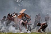 Prajurit Kopassus TNI AD membersihkan sisa peralatan seusai unjuk kebolehan dalam peringatan HUT Ke-67 Kopassus di Mako Kopassus, Cijantung, Jakarta Timur, Rabu (24/4/2019). HUT Ke-67 Kopassus mengangkat tema Mewujudkan Prajurit Kopassus yang Profesional, Kuat dan Tangguh serta Adaptif Menghadapi Tantangan Global. ANTARA FOTO/Sigid Kurniawan/pras.