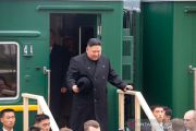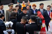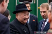 Pemimpin tertinggi Korea Utara Kim Jong Un tiba di Khasan, Rusia, Rabu (24/4/2019). Kim Jong Un melakukan kunjungan pertama kalinya ke Rusia dan dijadwalkan untuk bertemu dengan presiden Valdimir Putin. ANTARA FOTO/Reuters/pras.