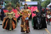 Peserta festival dari Suku Tolaki Konawe Selatan menunjukan kain tenun khas mereka saat Festival Tenun dan Atraksi Budaya Daerah Sulawesi Tenggara, Kendari, Sulawesi Tenggara, Rabu (24/4/2019). Festival tenunan khas dan atraksi budaya tradisional dari 17 kabupaten di Sulawesi Tenggara bertujuan melestarikan kearifan lokal serta ajang promosi daerah. ANTARA FOTO/Jojon/hp.